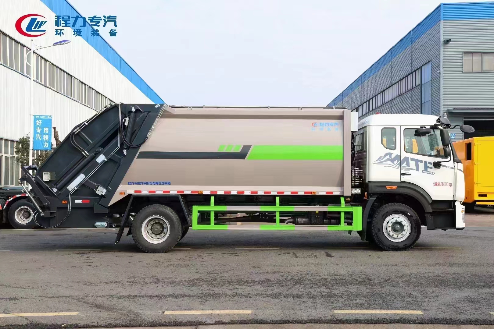 ??????湖北程力汽車:程力威牌國六重汽MATE16-18方壓縮式垃圾車產品型號及參數(shù)配置,程力威牌國六重汽MATE16-18方壓縮式垃圾車高清圖片,程力汽車系列程力威牌國六重汽MATE16-18方壓縮式垃圾車最新報價請撥打客服熱線。車輛主要配置 產品名稱: 程力威牌CLW5183ZYSBHJ壓縮式垃圾車 外形尺寸: 9570,9470,9050, 894025503300,(mm) 排放水平: 國六 貨箱尺寸: (mm) 總質量: 18000(Kg) 接近/離去角: 17/11,17/12,17/13() 額定質量: 6770,6705,7...