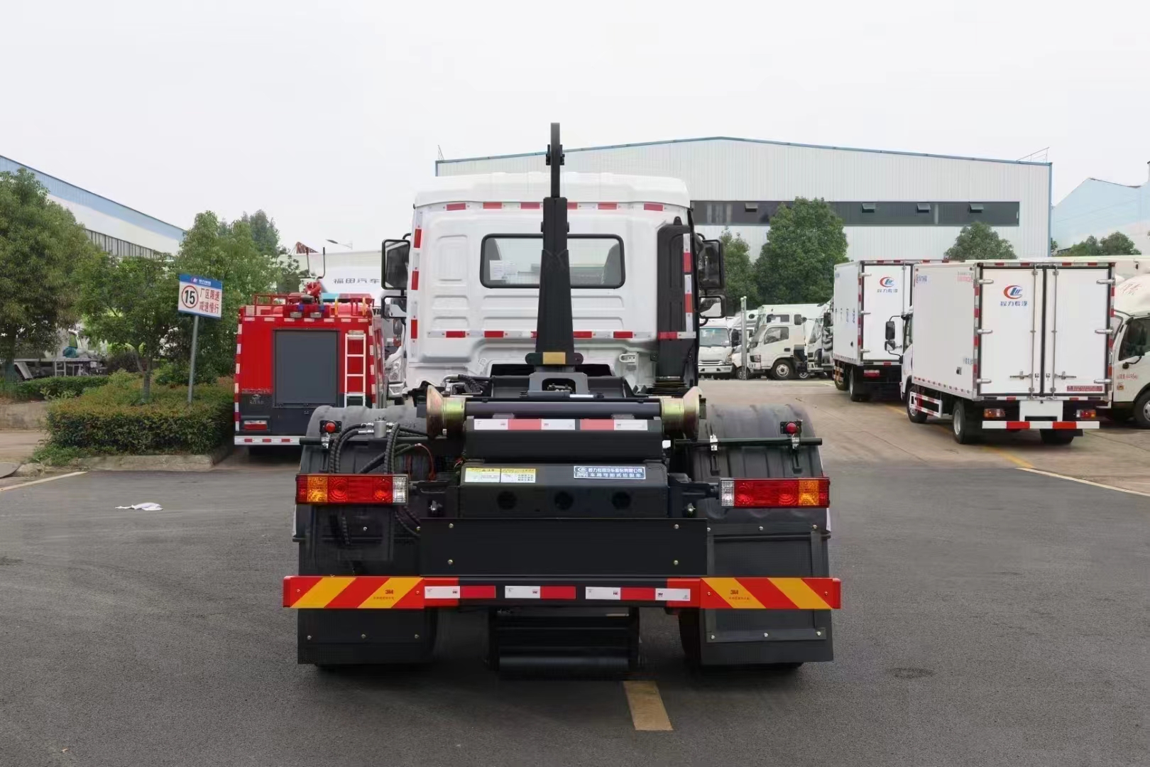 上裝配置 配套14-16方勾臂垃圾箱或移動站,主勾臂由高強度板材制作,雙油缸控制,伸縮式主臂,加強型上裝結(jié)構(gòu),液壓支腿,橫向鎖緊,品牌多路閥,進口柱塞泵,標(biāo)配室內(nèi)外操作(帶遙控),防誤操作,帶平衡閥,液壓鎖。