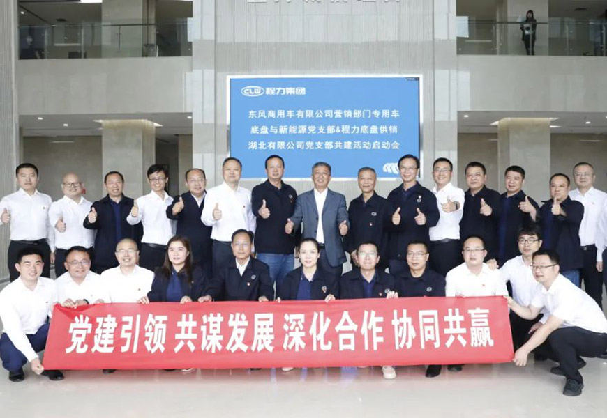 5月末,程力集團(tuán)黨委牽頭,東風(fēng)商用車有限公司營(yíng)銷部門專用車底盤與新能源黨支部攜手程力底盤供銷湖北有限公司黨支部,聯(lián)合開展“奮進(jìn)新時(shí)代,共創(chuàng)向未來”共建活動(dòng)。