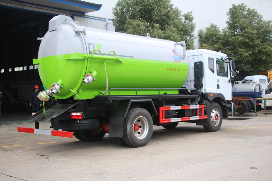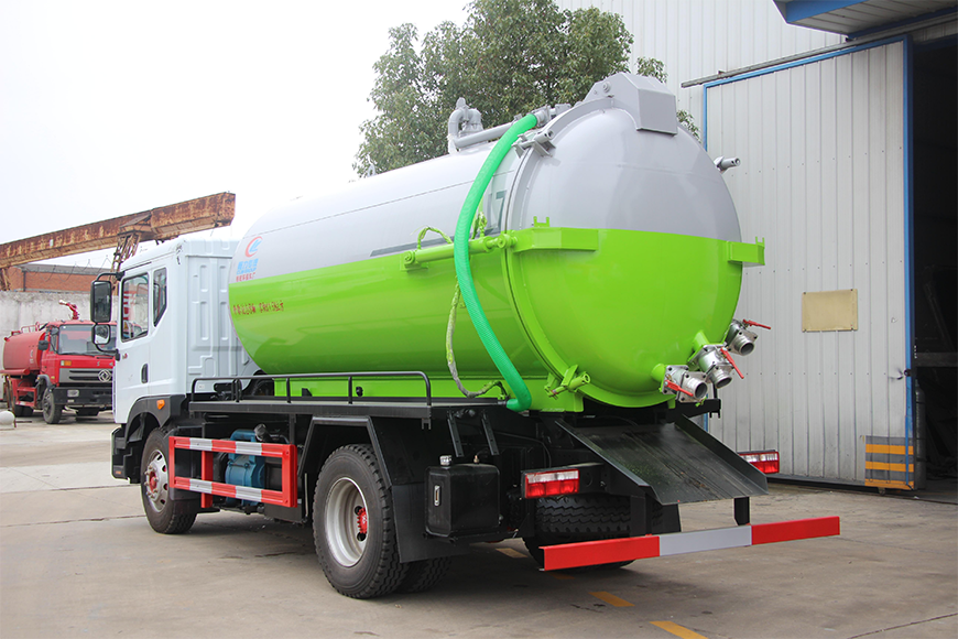上裝配置 污罐:Q235武鋼6MM厚碳鋼板,標(biāo)配采用億豐SK-12水循環(huán)泵。防溢閥,視糞管,配一根8米吸污管,罐體封頭一次壓鑄成型、罐體帶舉升,后蓋為液壓開啟。罐內(nèi)污物可通過后蓋直接傾倒,具有真空度高、噸位大、效率高、用途更廣泛的特點。